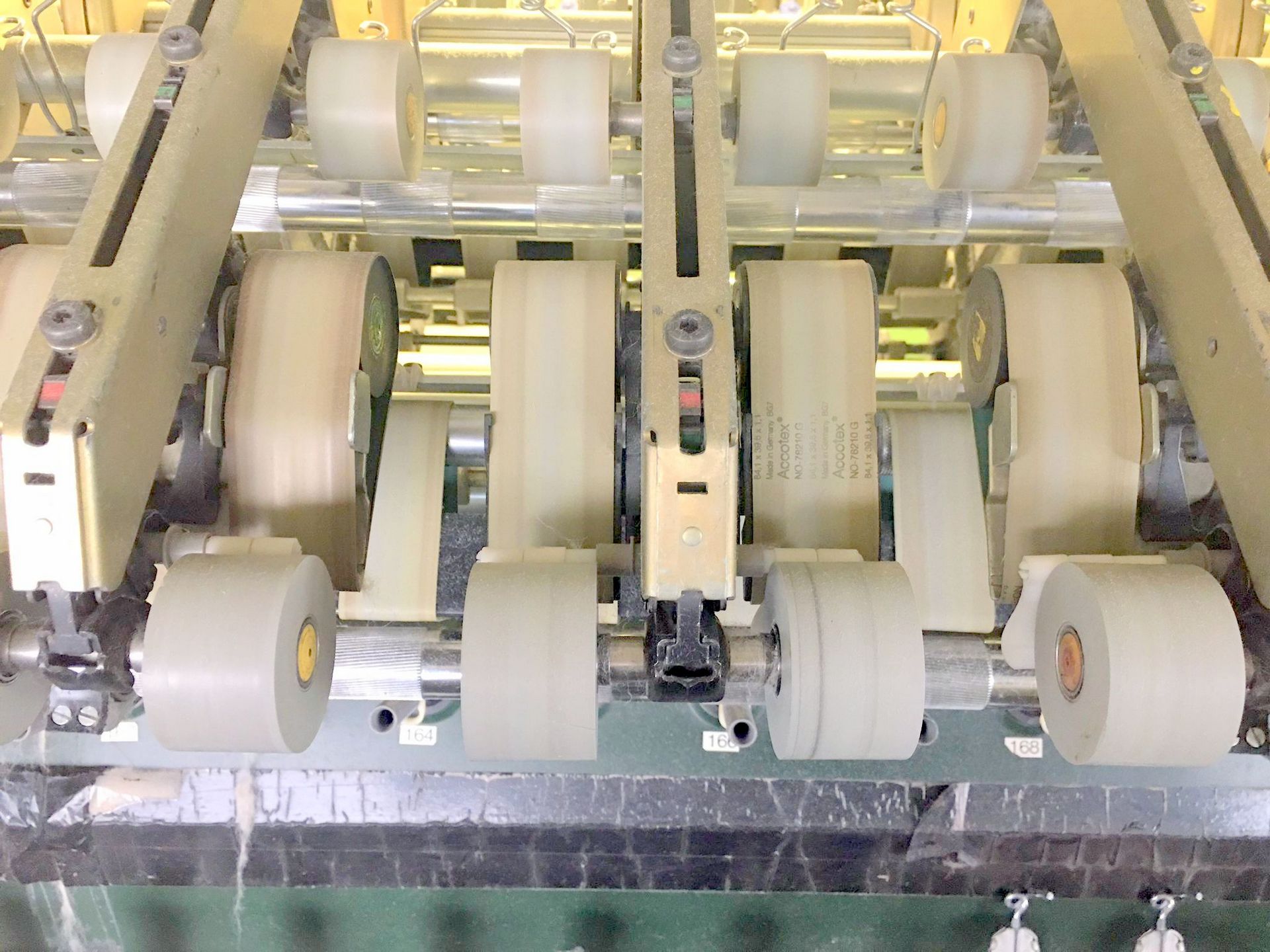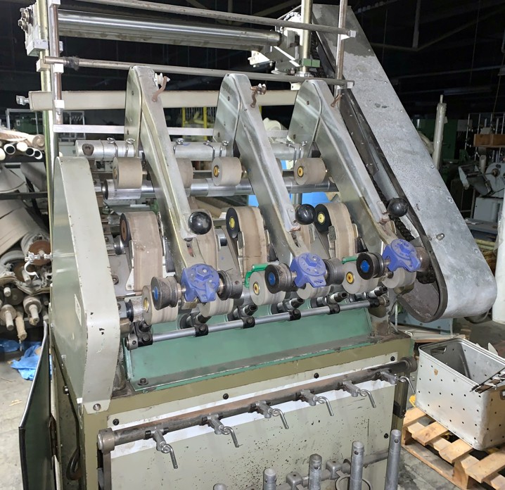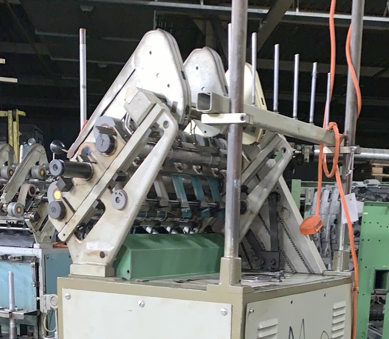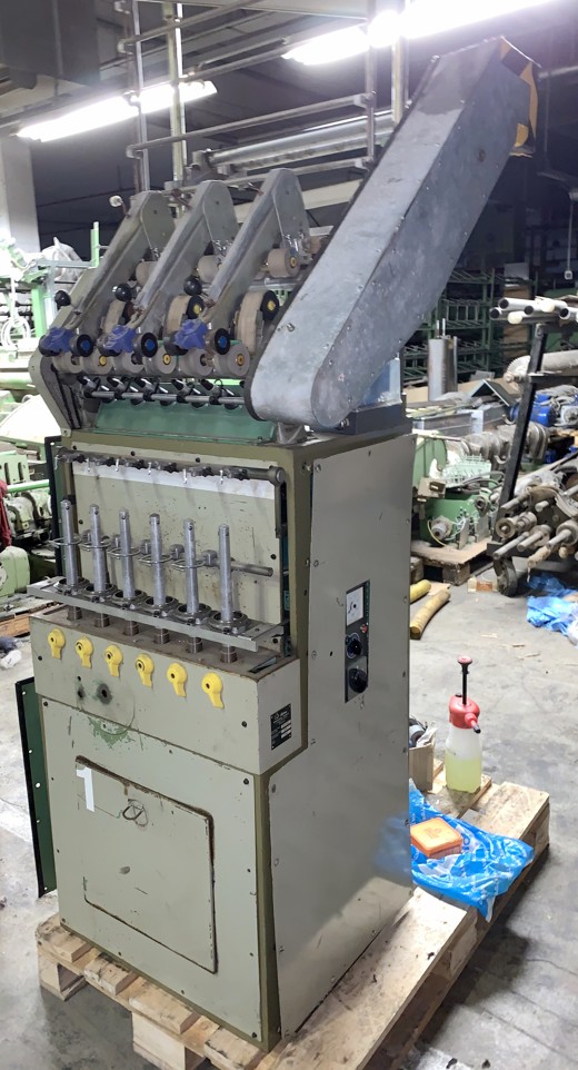 Karl Mayer winder type RC10 AWD/VD, 1990,12 spindles, traverse 10”, tubes 280mm, 1°50 for cones until 4 kg,