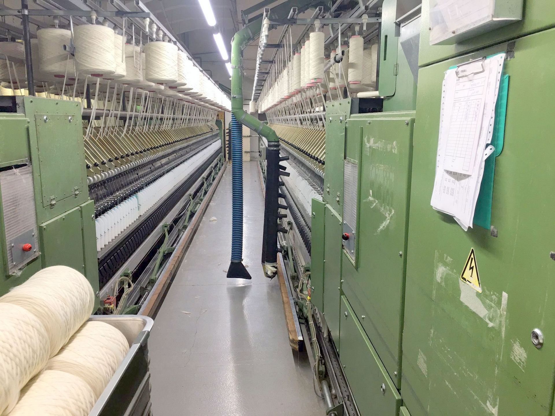general overhauled 2015, for worsted and middle staple 40-120 mm, 640 spindles, pitch 75 mm, ring-dia. 48 mm, oiled rings, tubes 260 mm, double apron drafting SKF 225, modified for long and middle staple 120-40 mm, Cowemat, good condition