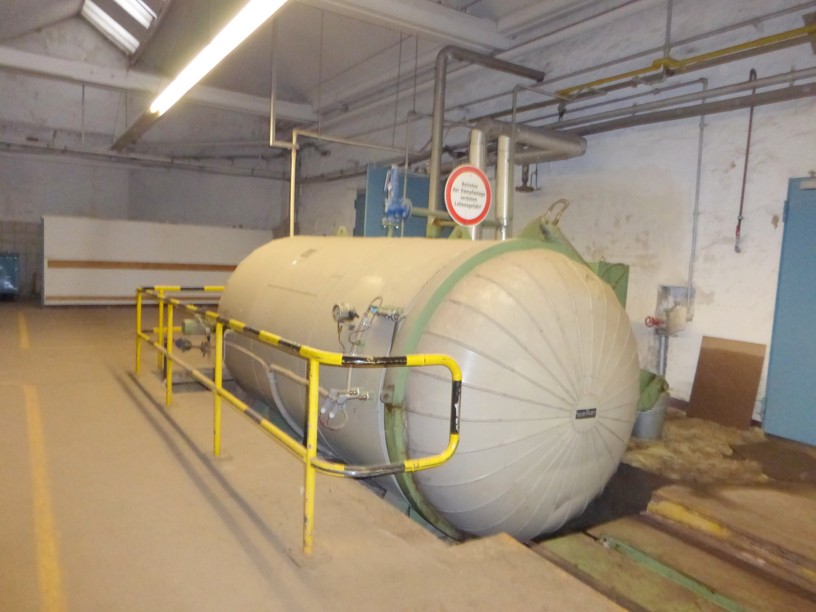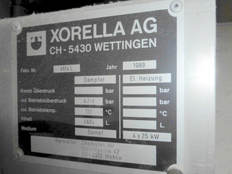 1 vakuum steamer: DämpferXorella, 1989, 4624 l, 4 bar, temperature 50-151°C,diameter inside 1.400 mm, length 2.600 mm,electric heating 4 x 25 kW,Sihi-vakuumpumpe, automatic temperature control, still complete on floor.