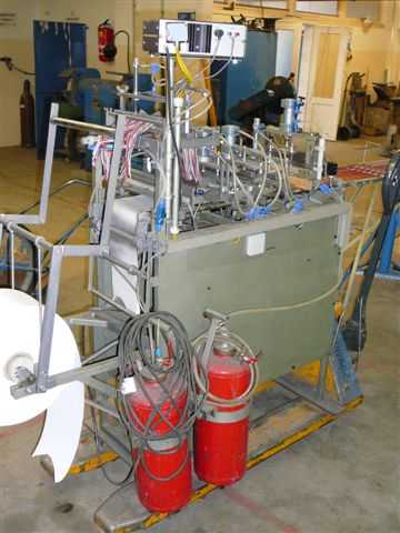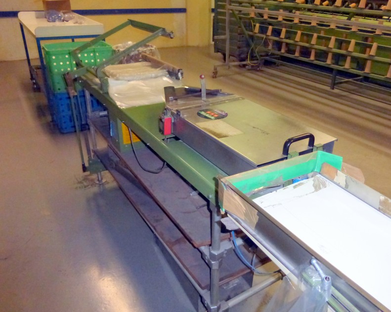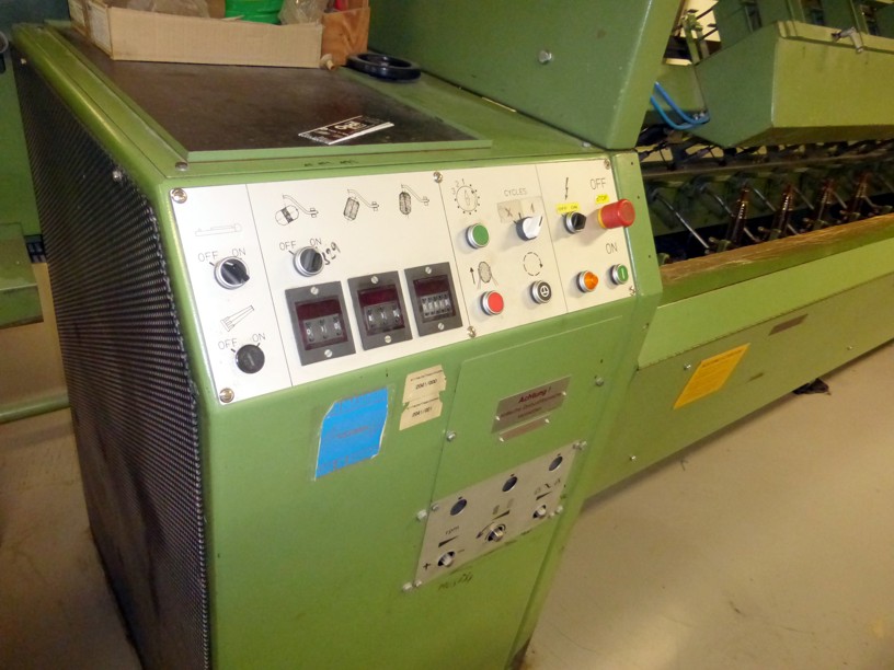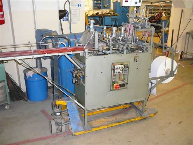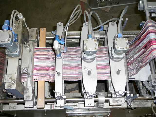 Fabr. Wagenfelder, Germany, year ca. 1995, system Mayer for shadecards maximum 200 mmWidth, with 2 heatingbars, temperaturecontrol, variable transport for different shade cards length,Cutting device, all functions done by pneumatic cylinders and controlled by timers, simple handling.Bonding of the yarnends on normal paper by liquid glue (Uhu) and 1 small stripe each shade cardAnd heatingbar.