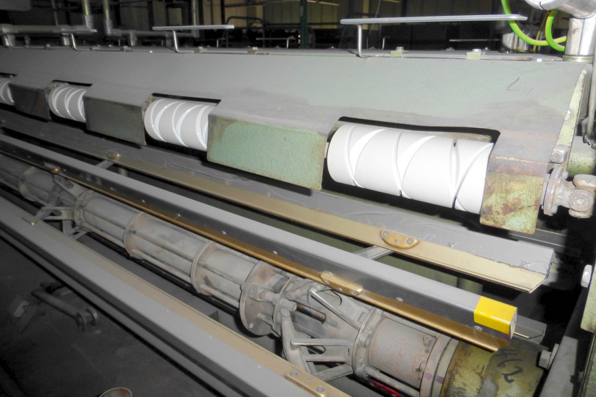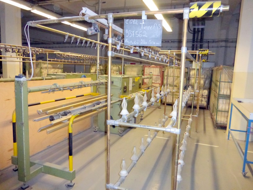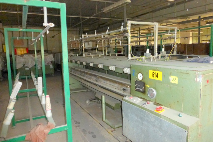 For 2 x 8 = 16 Jumbo-hanks until 3-4 kg, conic and cylindric,Circumference 1,60 – 2,30 m, width 200 – 400 mm380V/3Ph/50HzMachine is in good condition and still in running position.