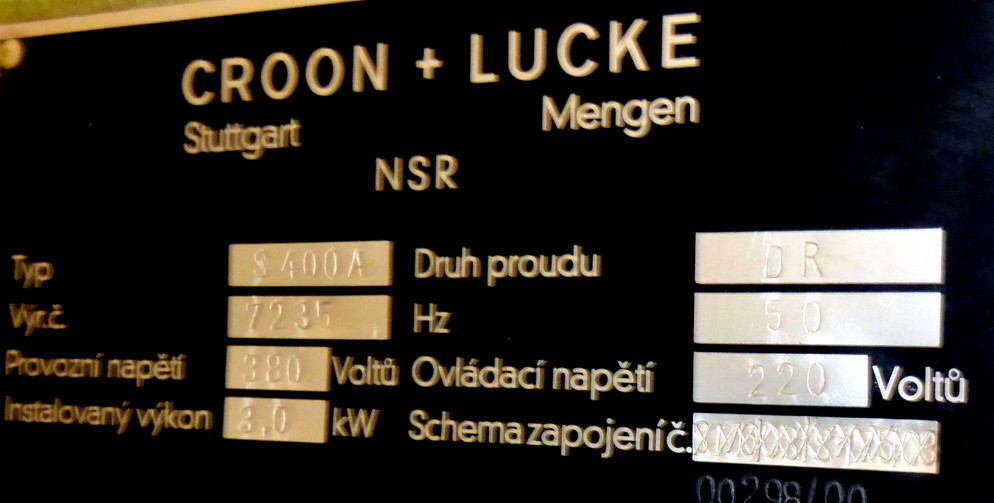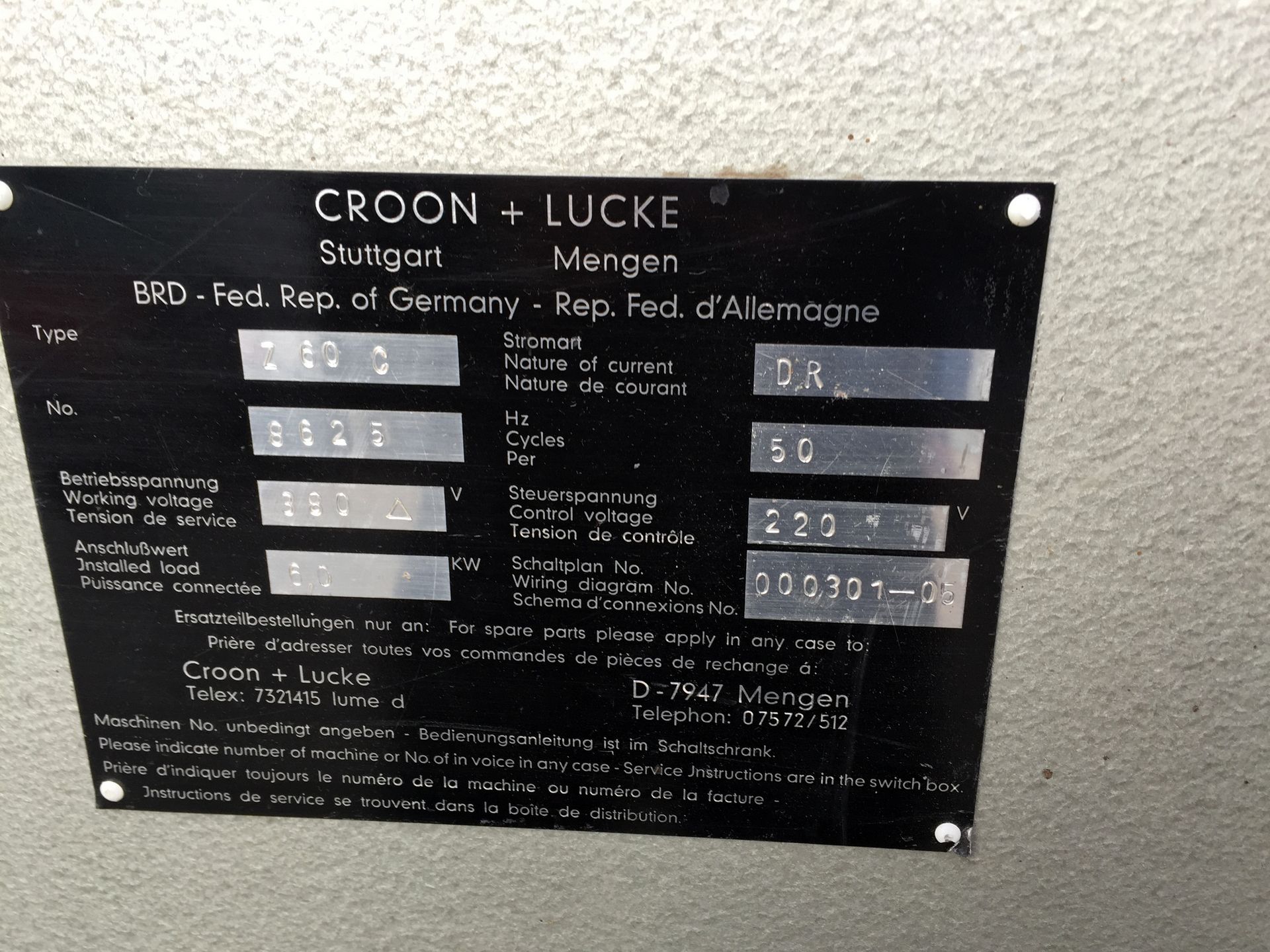 Croon & Lucke, ca. 1980, type S400A, with 2 reels, for each 15 hanks 20-1000 gr, circumference 1.400 until 1.900 mm, metercounter, 1 main motor each reel, gear motor for automatic opening and closing of reels, 15 electronic sensors each reel for yarnbreak control, very good condition, machine is still in production, 380V/50Hz.