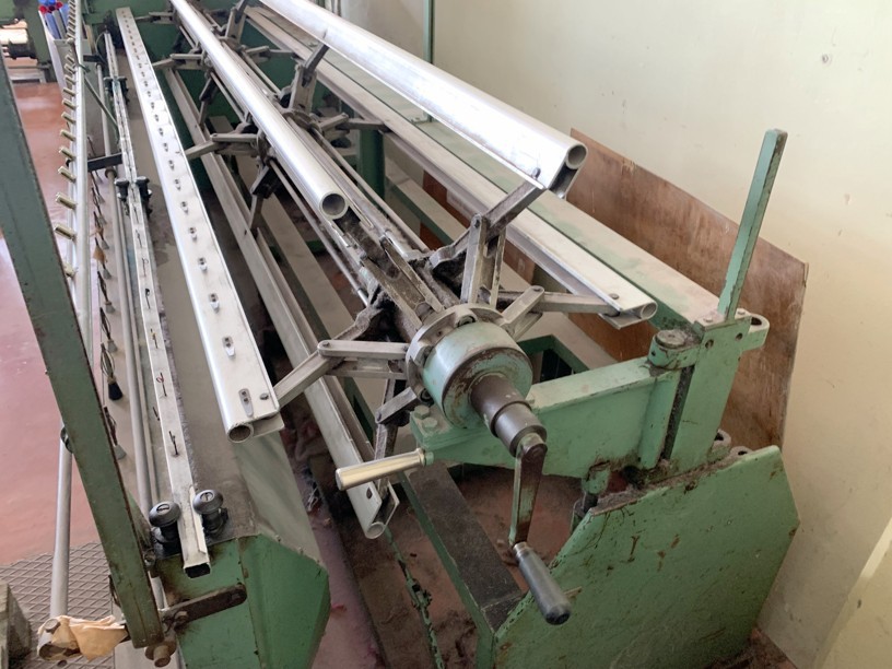 For 5 Jumob.hanks until 3-4 kg each side conic (copsform) and cylindricCircumference 1300-1900 mm,Pitch 475 mm for hanks until 400 mm width, porcellan traverse rollers,Meter counter, 2 carts to pull out the hanks in untied form.The reel can start again promptly.During the reel is running, the hanks on the cart can be tied up.