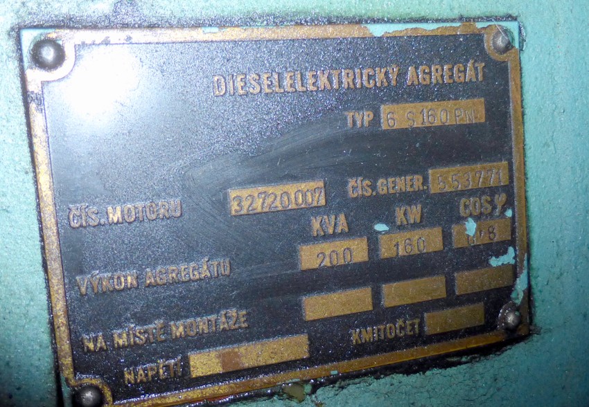Dieselaggregat, 200 kVA, 160 kW, 6 cylinders, speed 1.000 t/min, more details see attached photos and protokol, only 772 running hours (tests every year in a hospital)