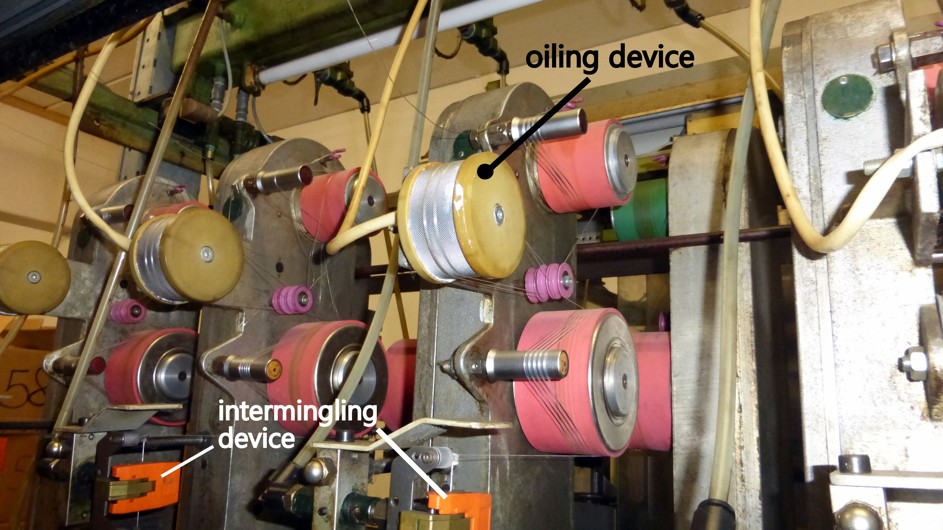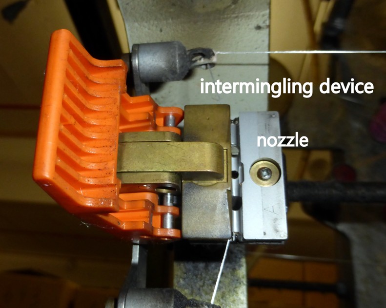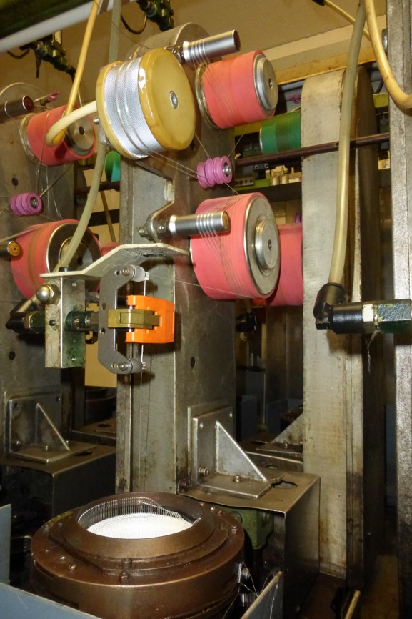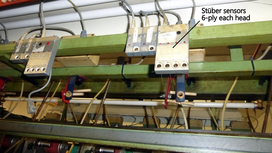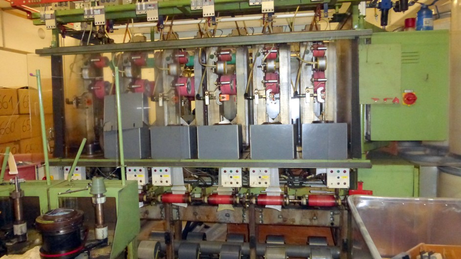 presumptive Retech AG, 2 x 6 = 12 heads, diameter 95 mm,pitch 14 needles/inch, electronic yarn break control Stüber 6-ply,godet roll feeding, oiling device, intermingle nozzle for filament,uproll device for hose