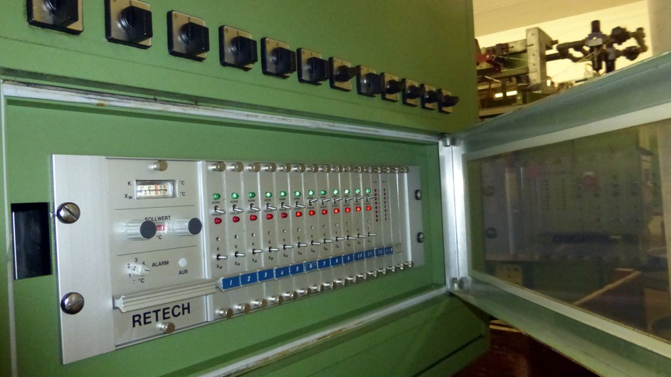 With 5 polyethylen-tanks with level control and scale for content, 250 ltr., 4 meter-cylinders 25 ltr.,1 meter cylinder 50 ltr., electric control, pipes and valves