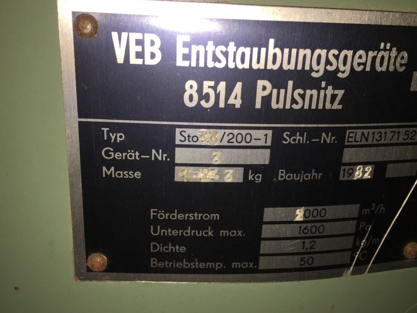 capacity 2.000 cbm/h, closed system with 6-8 filter pipes, 3 kW, 380 V