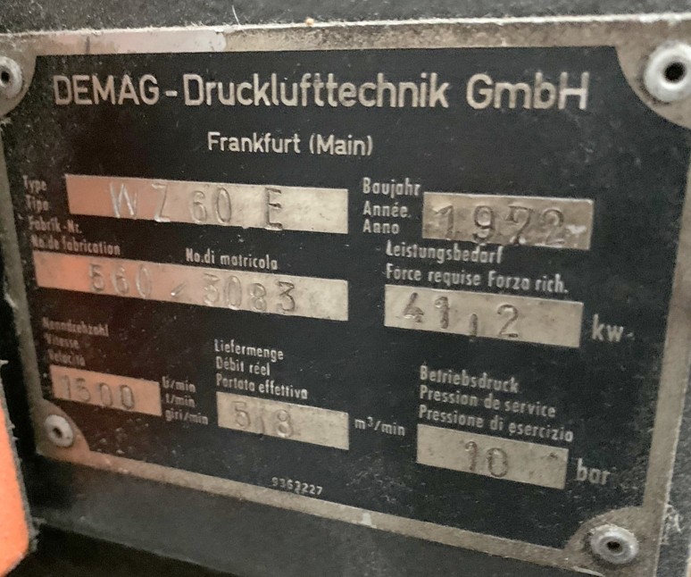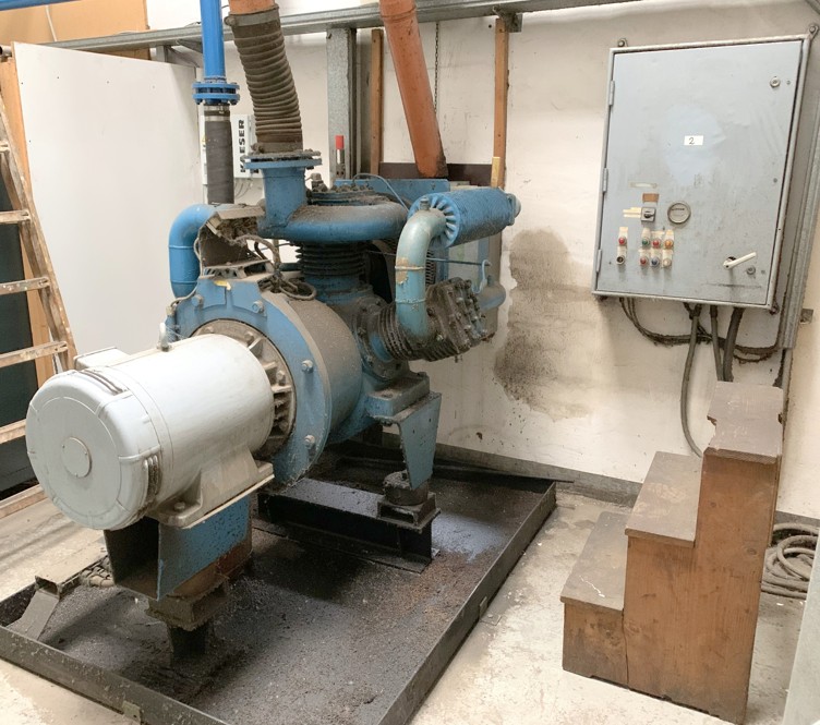 Zwickauer Maschinenfabrik, year ca. 1975, 40 kW 380 Volts, 240 m³/h, 8 bar, car-trailer length includingShaft 4 m, width 1,80