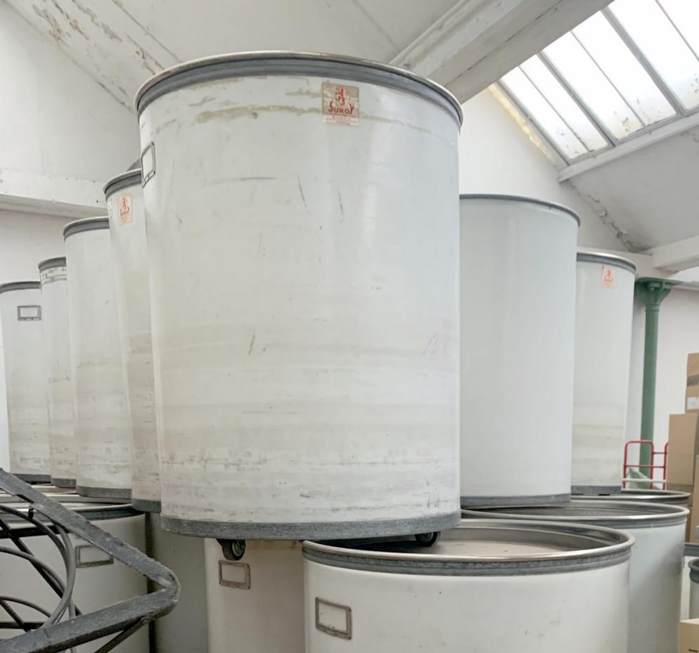 c. 20-30 pcs. diameter 700 x 1.000 mm height, Polyethylene white, perforated for steaming