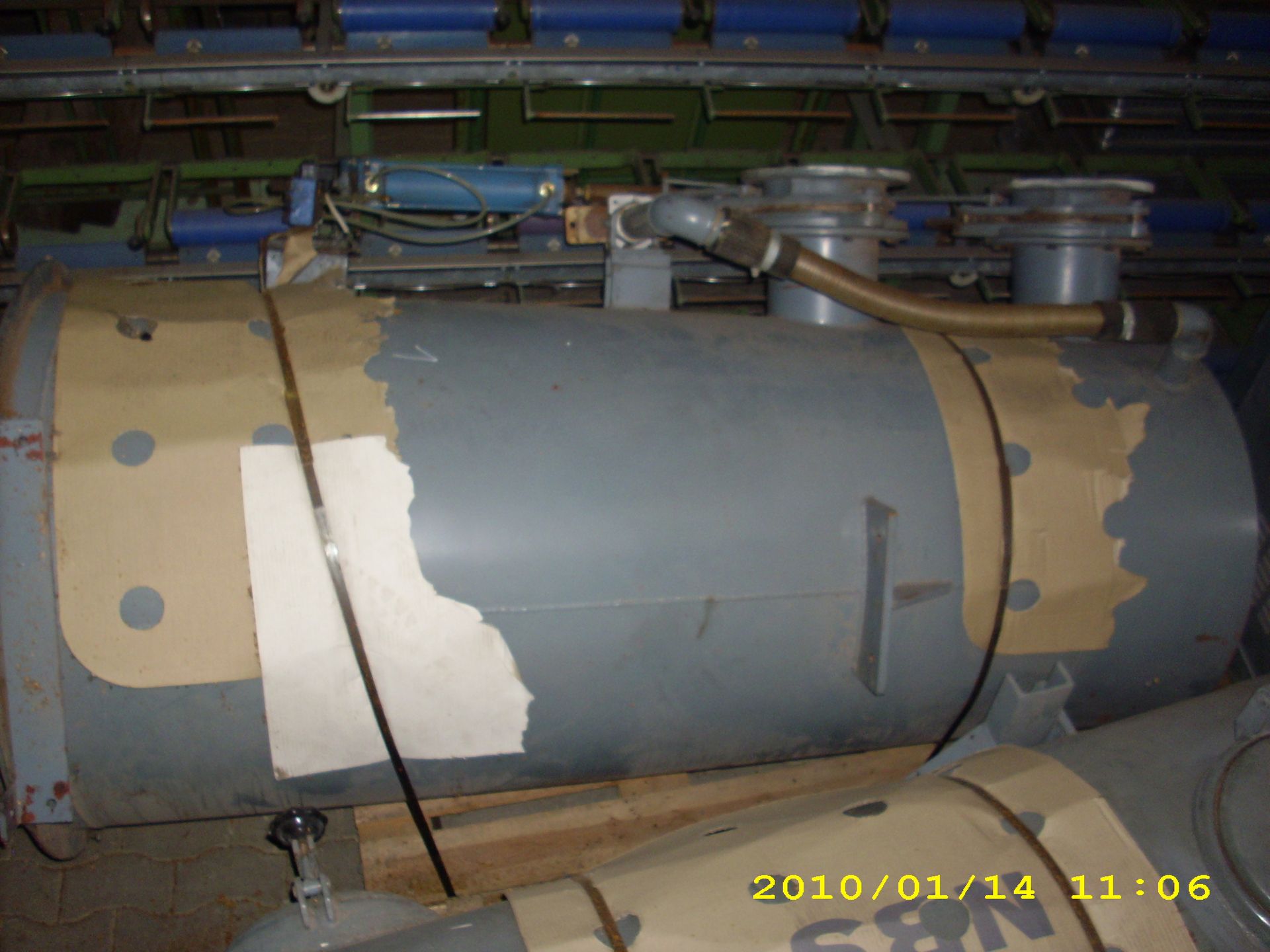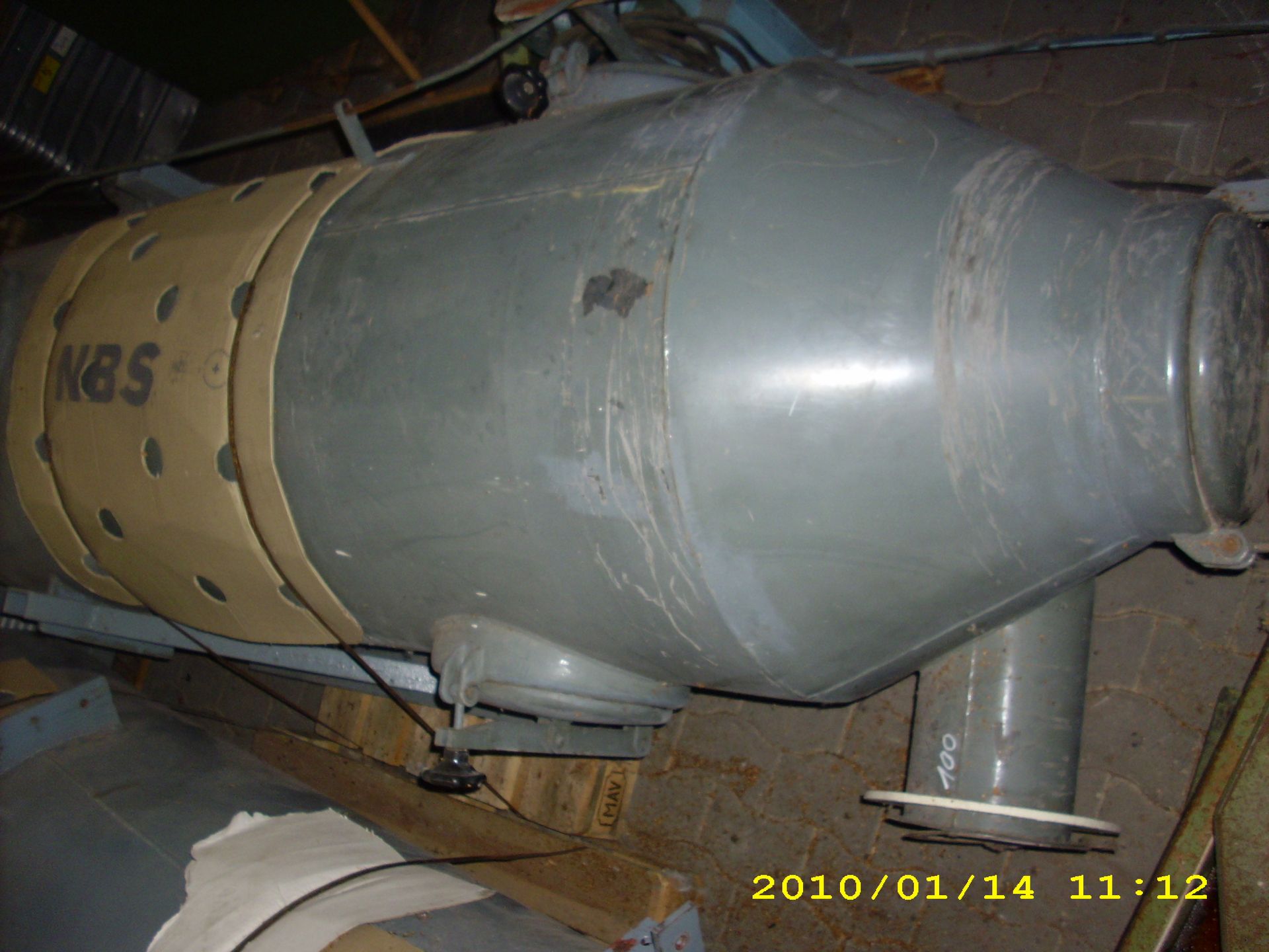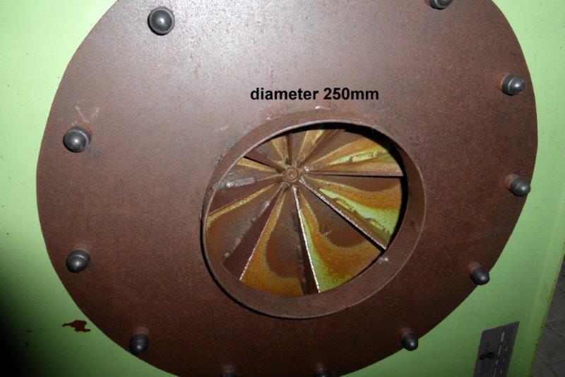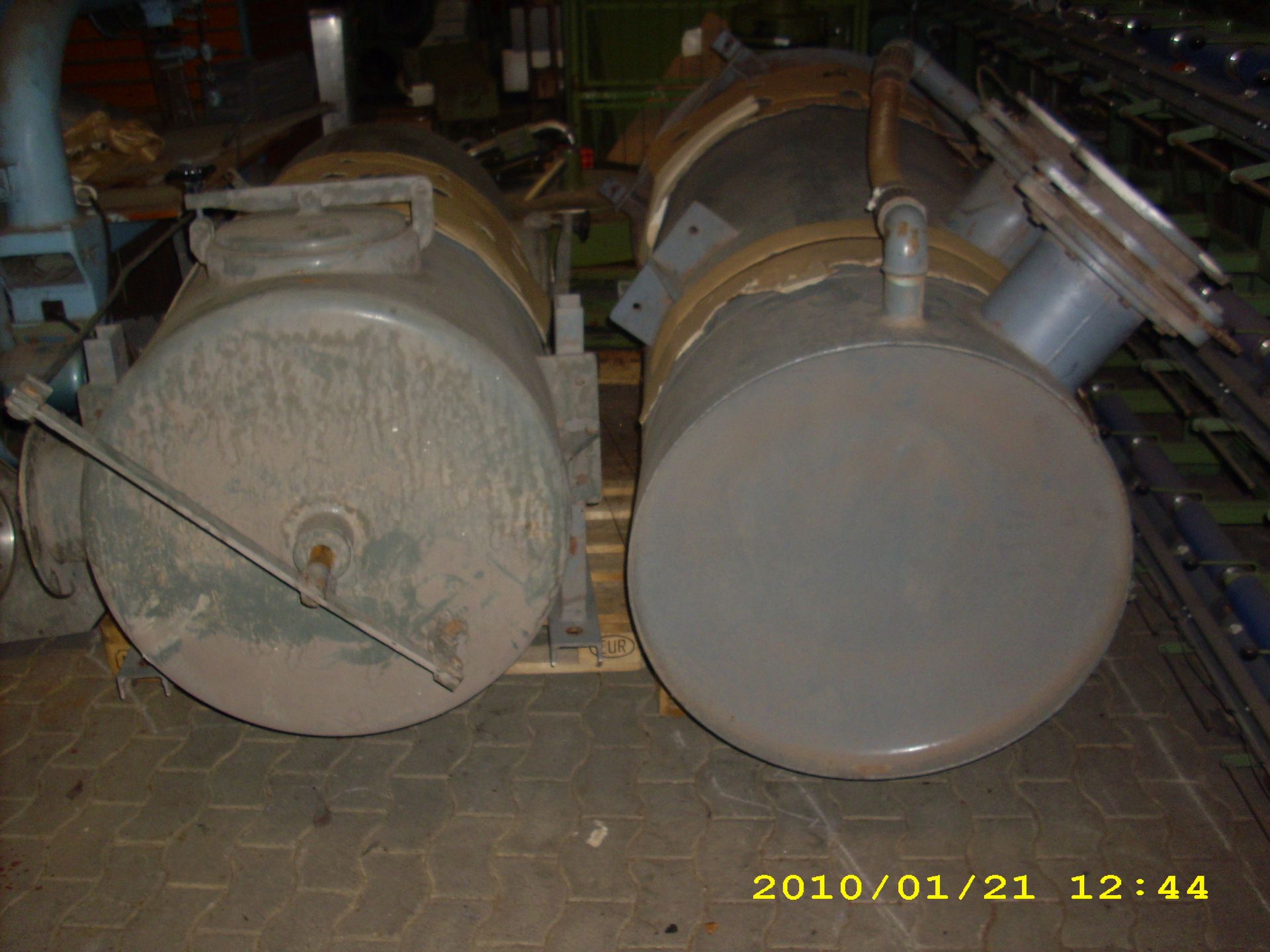 1 filterdrumDiameter 2.500 mm, length 5.000 mm, with gear motor,Suction ventilator for cleaning the filter surface with suction nozzles+1 fanCapacity 150.500 cbm/hour, Pt = 46 kg/qm P = 1,2 kg/cbmMotor 30 kW, 380 V / 3 Ph / 50 Hz